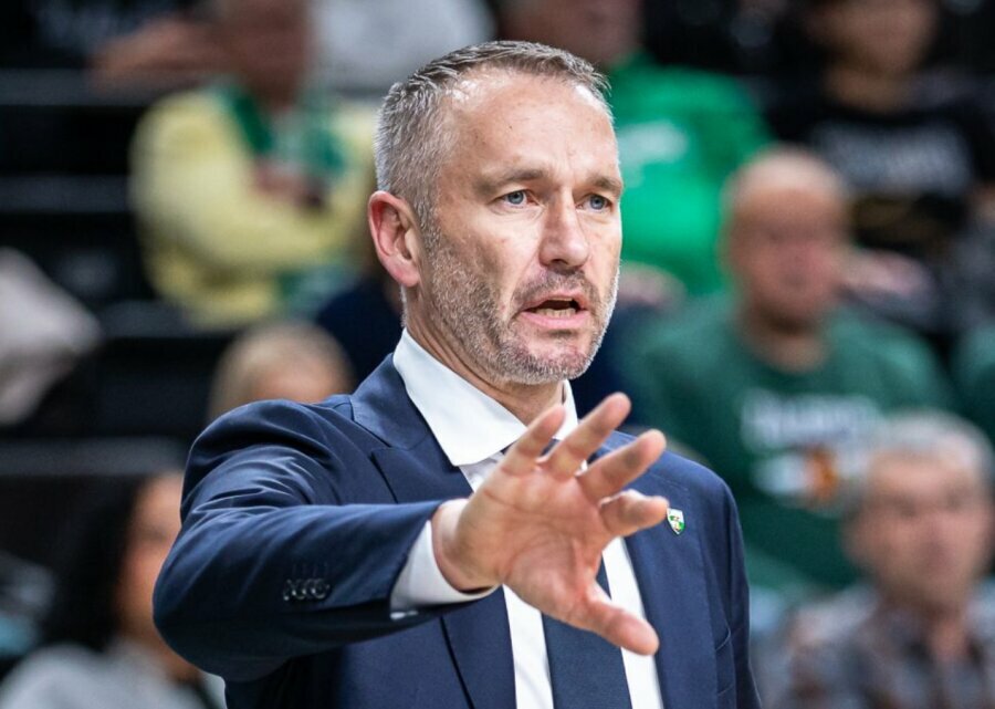 T. Masiulis nurodė Ą. Tubeliui atlikti užduotį poziciniame krepšinyje